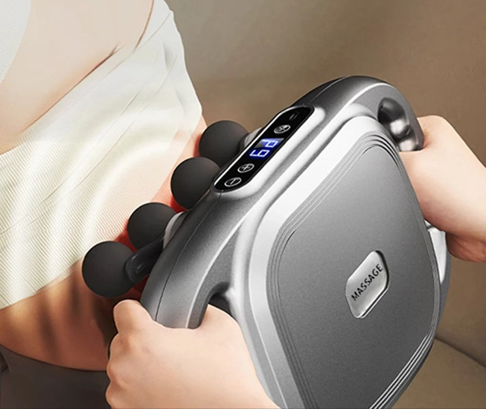 אקדח עיסוי Fascia בעל 12 ראשים מתחלפים ותדר גבוה – מיועד לעיסוי מקצועי ועמוק של שרירי הגב, המותניים, הצוואר והכתפיים. מספק הרפיית שרירים מהירה, מקל על כאבים וממריץ את זרימת הדם, לשימוש יומיומי בבית או כחלק משגרת ספורט.