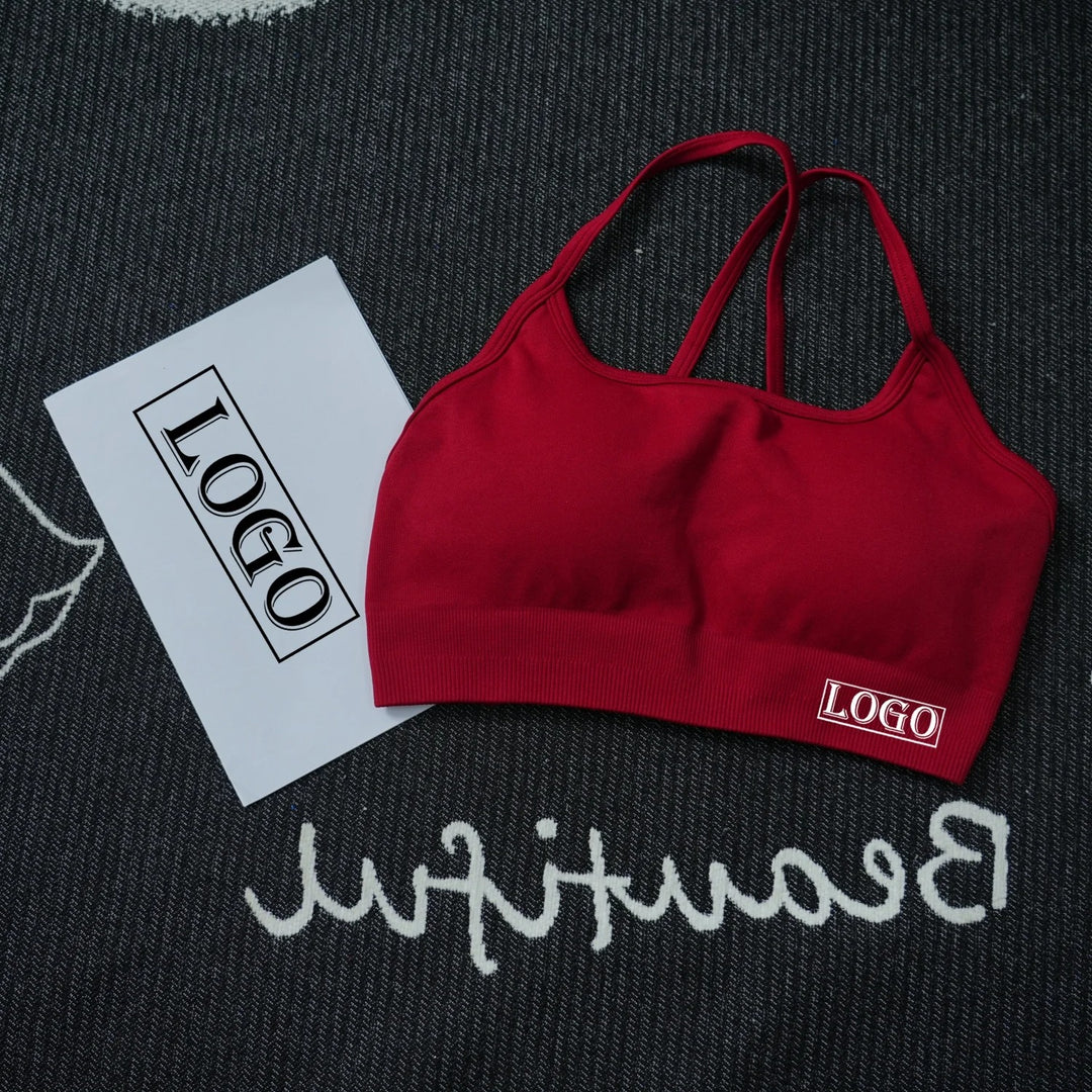 יוגה ספורט ברה דינמית ללא גב עם לוגו נשים ברה עליונה ללא תפרים תמיכה בינונית מרופדת חדר כושר גמישה ספורט