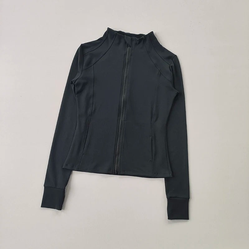 ג'קט ספורט לנשים עם רוכסן, חולצת יוגה לכושר גוף, מעיל ריצה חם לחדר כושר עם שרוולים ארוכים, חולצה צמודה ומחמיאה