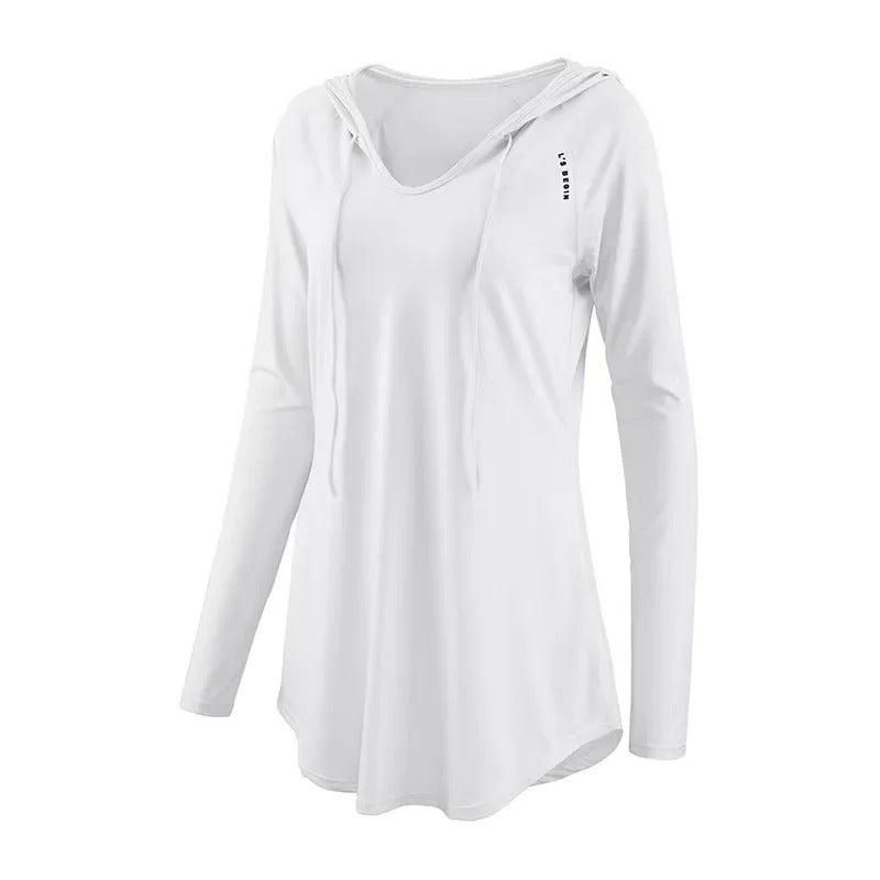 יוגה ביגוד ספורט העליון חולצה כיסוי רופף מזדמנים של נשים, ארוך שרוולים מהיר ייבוש רעם ברדס כושר